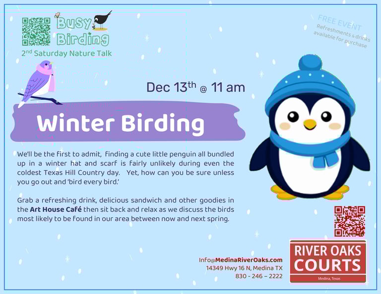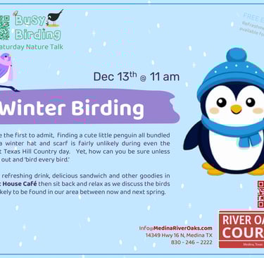 We’ll be the first to admit, finding a cute little penguin all bundled up in a winter hat and scarf is fairly unlikely during even the coldest Texas Hill Country day. Yet, how can you be sure unless you go out and ‘bird every bird.’