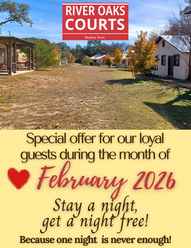 Since 1936, Stokes Motor Courts (now River Oaks Courts) guests were attracted to the Medina River’s fishing and swimming. Following a full renovation and restoration of the property and buildings, the magic is back at the Courts.