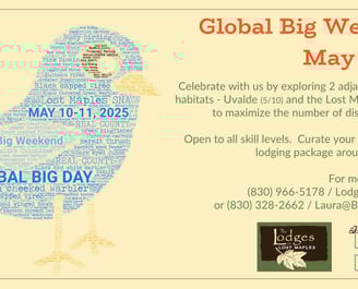 with a Global BIG DAY/WEEKEND Lodging and Birding Packages May 9-12, 2025